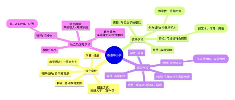 | 直资学校 | 中英并重 | 学业成绩、课外活动 | 每年约2万-8万港币 |