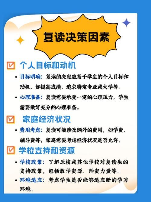 - 时间与成本:插班复读通常需要额外一年时间,并可能涉及学费、补习等费用。家长应评估家庭经济状况,确保可持续支持。
