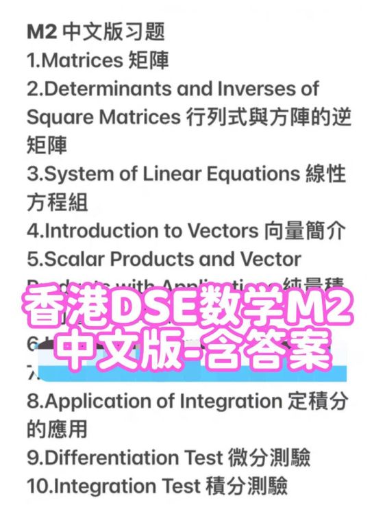 - 参考书籍: 选择口碑良好的出版社出版的DSE数学练习册,重点做其中的真题分类汇编和模拟题。