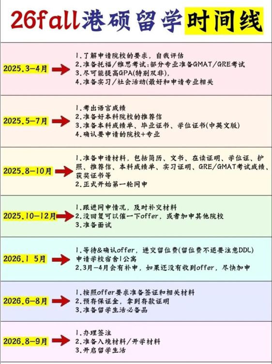 一个高效且无压力的申请,始于对时间节点的绝对把控。以下是为准留学生量身定制的时间规划表: