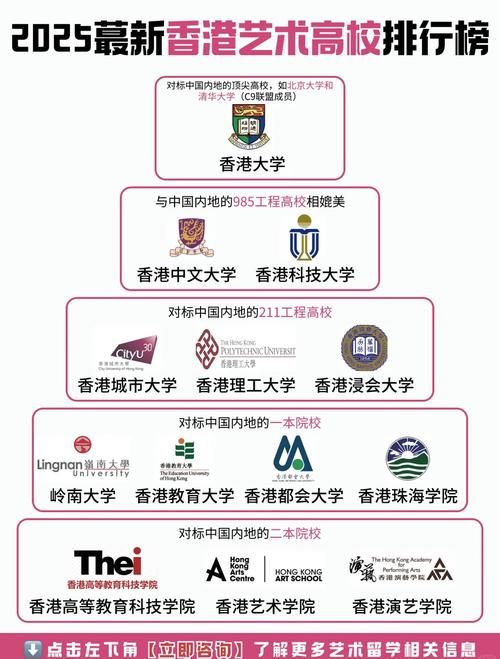 香港大学:作为本地学术标杆,其学历在国际上认可度极高,为毕业生留港或海外发展奠定坚实基础。香港中文大学:独特的书院文化提供丰富的全人成长体验,其毕业生在各界均广受认可。香港科技大学:以其高度的国际化与科研创新氛围吸引顶尖学子,尤其适合志在科技与商界发展的学生。香港理工大学:与业界联系紧密,课程实用性强,毕业生就业率一直名列前茅。香港城市大学:位于市中心,国际化程度高,创新课程设计与研究备受好评。香港浸会大学:其传理艺术学科毕业生在相关行业竞争力强,大学整体人文氛围浓郁。香港岭南大学:提供紧密的师生互动和小型学习社区,适合追求个性化博雅教育的学生。香港教育大学:对于立志投身教育行业的学生是首选,其教育研究及师资培训享有崇高声誉。香港都会大学:课程设置灵活,兼顾学术与职业需求,为不同背景的学生提供多元升学路径。香港恒生大学:注重教学质量与学生个人发展,商科课程获得专业机构认证,就业导向明确。