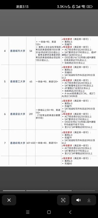 - 英语能力要求:由于香港高校普遍采用英语授课,因此对申请者的英语水平有明确要求。常见要求包括: