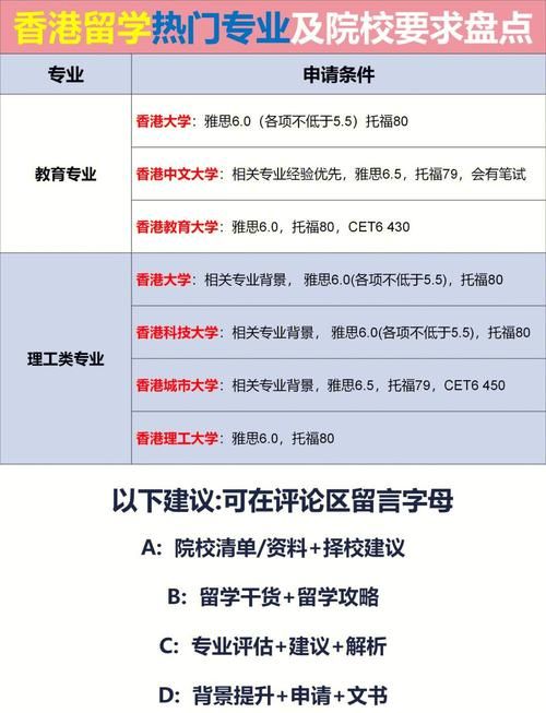 随着香港与内地教育交流的日益紧密,赴港攻读本科成为众多学子的热门选择。最新的招生政策在保持学术要求核心不变的基础上,更注重学生的综合素质与多元背景。申请者需密切关注各院校的入学门槛、语言要求及面试安排。在选择院校与专业时,应结合最新的大学排名、学科优势及个人职业规划进行综合考量,方能做出最明智的决策。